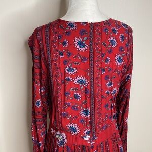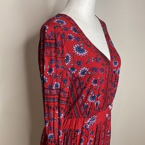 Step out in style with this elegant red floral maxi dress. Perfect for any occasion, this dress features a beautiful floral pattern that adds a touch of sophistication. The vibrant red color makes it a standout piece in any wardrobe.
