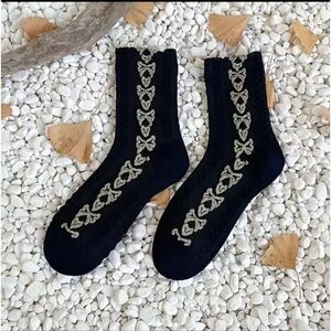 Cottagecore Embroidered floral tube dress Socks black and white bows