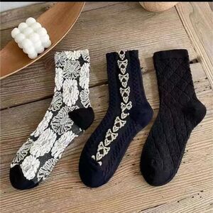 3 Paris Floral Embroidery Socks, Comfy & Soft Retro Style Mid Tube Socks, Women's Stockings & Hosiery