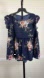 Shein Curve Navy Floral Ruffle Babydoll Blouse 1XL Romantic Cottagecore Top