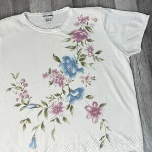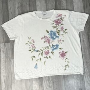 Cottagecore Floral White Short Sleeve Sweater Top Plus Size 3X