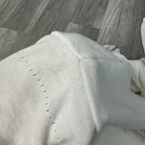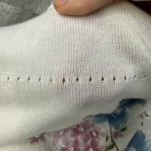 Cottagecore Floral White Short Sleeve Sweater Top Plus Size 3X, has shoulder pads, stain on sleeve and a few lighter marks