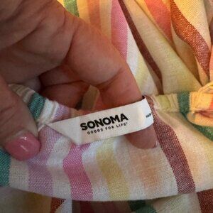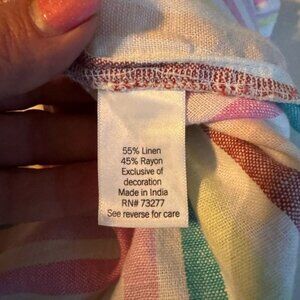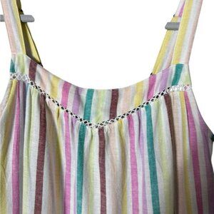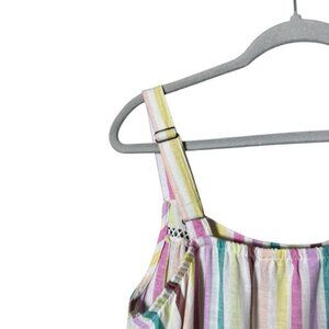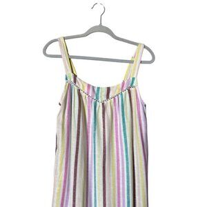 Cottagecore Linen Maxi Dress Large Rainbow Beachy Striped Ruffle