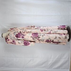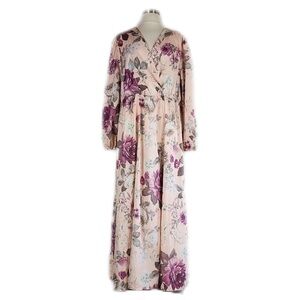Cottagecore Long Bishop Sleeve Floral Print Belted Maxi Dress 2X