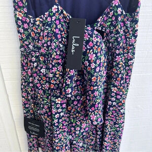 NWT! Such a cute romper from Lulus. Ties in the back. Navy Blue with floral print.