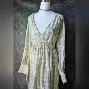 Plaid, sleeve tie, wrap closure, back tie, pockets