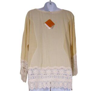 Step into a whimsical world with this Cottagecore crochet lace top. Romantic and demure, perfect for adding fairy-like charm to your wardrobe. New with tags, crafted by Roberta Freymann.