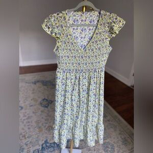 Cottagecore Prairie Ditzy Floral Dress V Neck Midi L Pale Yellow Easter Spring