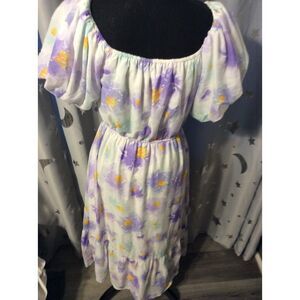 Cottagecore Puffed Sleeves Floral Dress Large L Lined Gathered Neckline