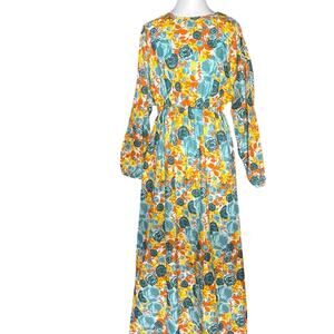 Cottagecore Small Prairie Yellow Floral Long Sleeve Elastic Waist Maxi Dress
