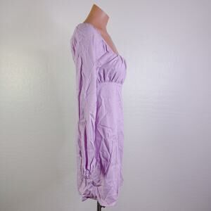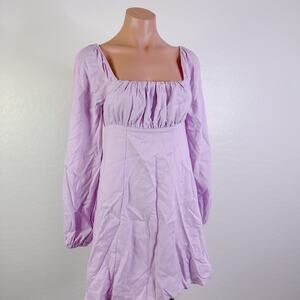Cottagecore Smocked Linen Square Neck Long Sleeve Empire Mini Dress Lilac XS NWT