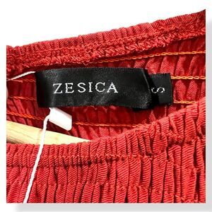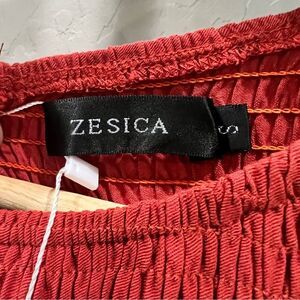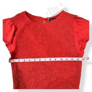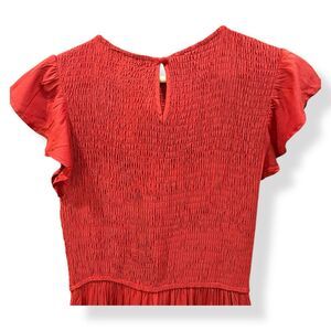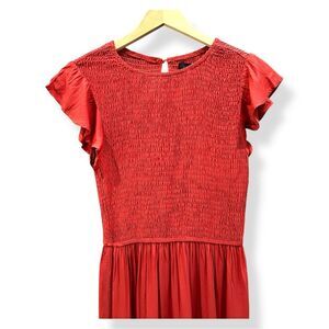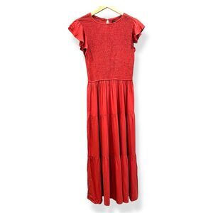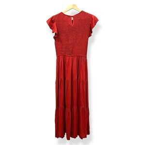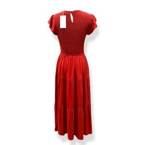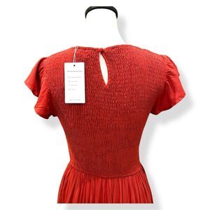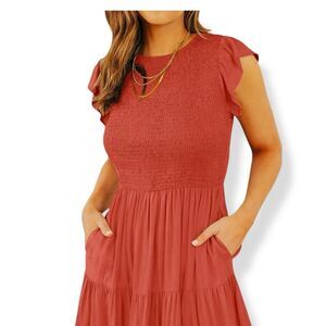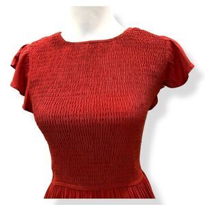 Cottagecore Smocked Tiered Midi Dress Flutter Sleeve Crewneck Rust Orange S NWT