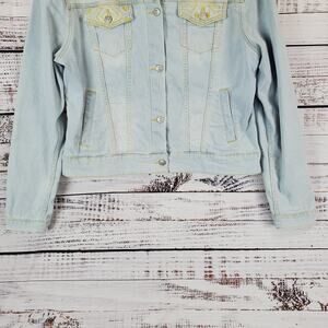Cottagecore Southwestern Cowgirl Baby Blue Denim Jacket Yellow Embroidered XL