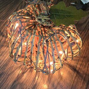 Cottagecore Style Grapevine & Metal Light-Up Pumpkin Decor