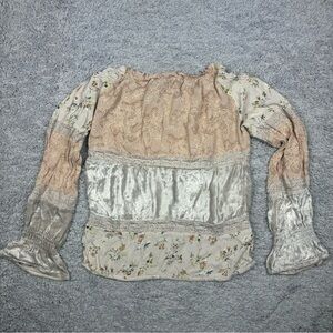 Cottagecore Top Womens Small Corduroy Bell Sleeves Y2K Lace Floral BOHO Blouse