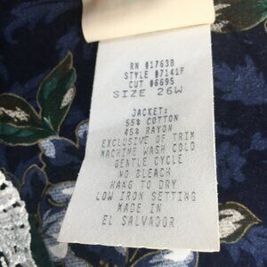 Cottagecore Vintage Jacket Womens 26W Floral Pearl Button Lace Trim