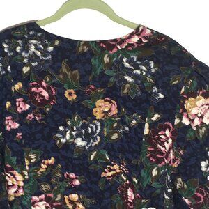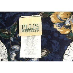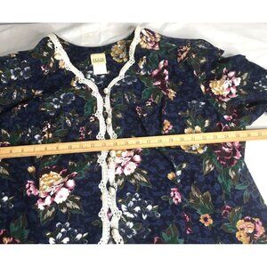 Plus Preferred Womens 26W Blue Floral Pearl Button Lace Trim 80s Vintage Style