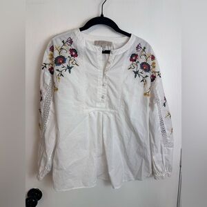 Cottagecore White Floral Embroidered lace detail Loft Top Sz Petite Small #1635