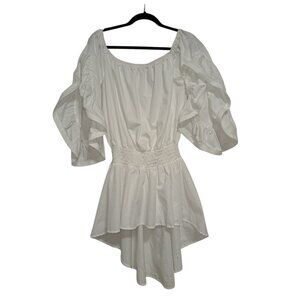 Title: Women’s White Ruffle Peasant Boho Tunic Top Dress Plus Size 3X Off Shoulder Smocked Hem