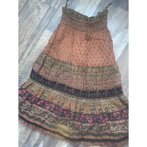 The long length and bohemian style give this skirt a cottagecore Y2K prairie fairycore feel that is perfect for those who love vintage fashion. This skirt is handmade and is a regular size M, suitable for women of all shapes and sizes. Whether you're dressing up or dressing down, this skirt is sure to be a statement piece in your wardrobe.