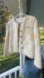 Stylish yellow and white quilt jacket featuring blue trim and buttons. Perfect for a chic look. I’ve never seen a quilt coat made so well. This is fully lined on inside. It has slight puff sleeves when worn from shoulder padding. Some normal wear and minor small stains on areas of quilt. Measures 21” UA to UA. 23” length shoulder to hem