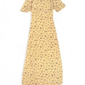 Cottagecore coquette rare vtg butteryellow floral maxi dress