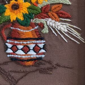 Cottagecore Handmade Wooden Framed Flowers In Pitcher Crewel Embroidery Wall Art
