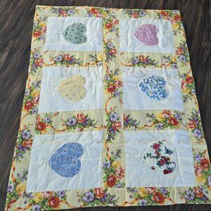 Very sweet quilted floral and hearts patchwork pillow cover/case. New without tags and in new/excellent quality and condition. Cottagecore/Country/Shabby Chic style. For bedroom, family/living room. DIMENSIONS: 31" x 25." Pillow easily slips into back "pocket." Machine washable.