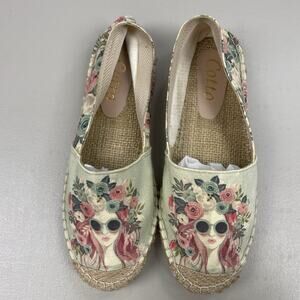 Cotto Espadrille Flats Womens 9 Floral Cottage Boho Retro Slip On Beige Pink