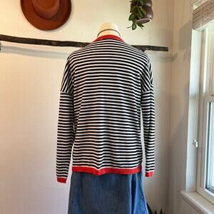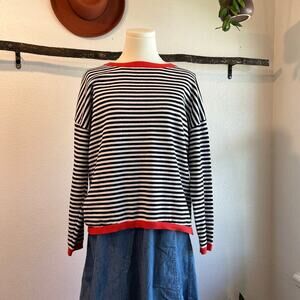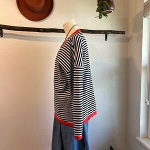 Cotton Black & White Striped Red Trim Oversized Pullover Sweater Size Small