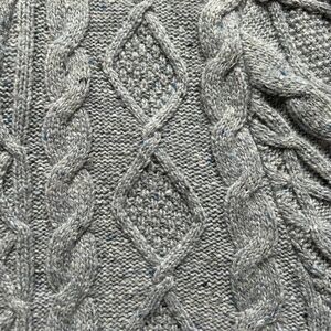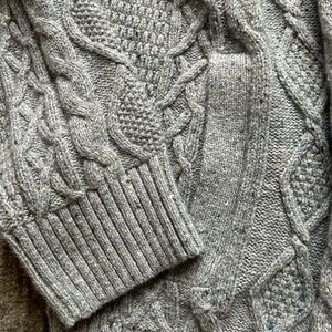 Cotton/Poly/Nylon/Wool blend grandpa cable-knit gray sweater with pockets. Very soft material. Size M (38-40). Excellent condition.
