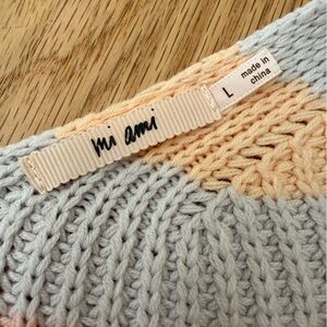 Mi Ami Cotton Blend Striped Colorful Pastel Chunky Knit Cardigan Sweater Button Front