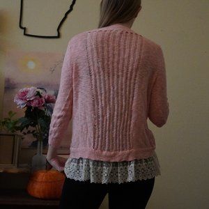 Cotton Blende Peach Orange Lace Edge Lightweight Layering Sweater