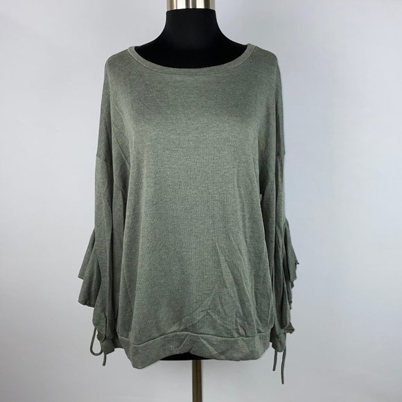 Cotton Bleu L Lightweight Sweatshirt Top Ruffle Tie Sleeves Rayon Polyester.