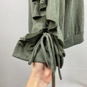 Good preowned condition. Lightweight sweatshirt like top. Ruffle tie accented sleeves.