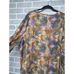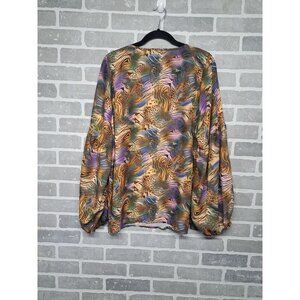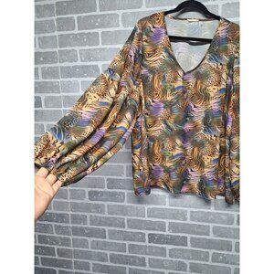 Cotton Bleu Womens Tiger Jungle Print Pullover Balloon Sleeve Blouse Size 1X