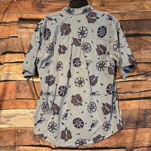 Cotton Brothers Shirt Mens Blue Hieroglyphics Button Up Short Sleeve Mayan USA