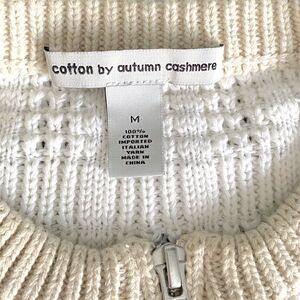 Cotton By Autumn Cashmere Women's Cardigan, Knit Zip-Up Sweater, Beige / Cream, Size M