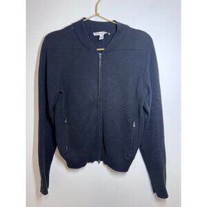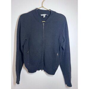 Cotton By Autumn Cashmere Womens Cotton Black Zip Bomber Cardigan Size S