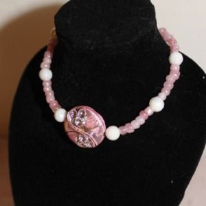 PINK PINK PINK! This cute quick to make necklace I designed just for fun! Fun to be an add on to your day to day bracelets! It fun it's cute it's cheap! 3 bet things right?!