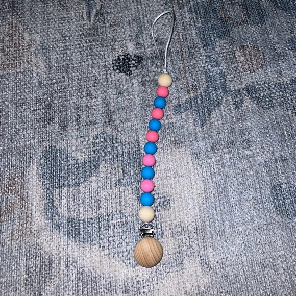 Cotton Candy paci clip with silicone and wooden beads!
