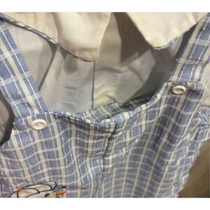 Cotton Candy 70’s Baby Outfit. The shirt is attached. Comes with matching hat. Good shape! The hat has a stain on the inside of the bill. Measurements in pictures. Unsure what size. I would guess 9 months, but definitely check the measurements! This is such a cute throwback. Someone’s little baby boy needs this!