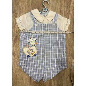 Cotton Candy 70’s Baby Outfit Blue And White Stripes Duck Vintage Old Matching H