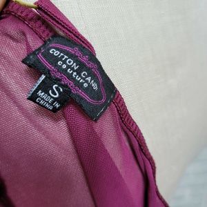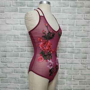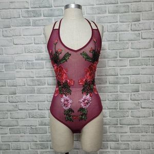 Cotton Candy Couture Maroon Mesh Floral Embroidered Bodysuit Lingerie