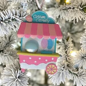 Cotton Candy & Ice Cream Carts Christmas Tree Ornaments Striped Roof Blue Pink