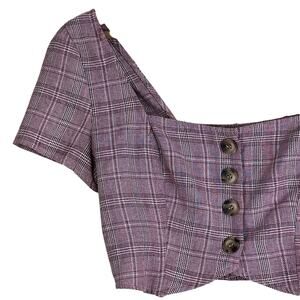 Cotton Candy LA Crop Top Womens M Pink Plaid Button Down Cottagecore Coquette