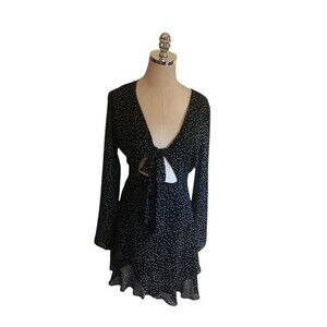 Cotton Candy LA Dress Women's Size Medium Black White Polka Dots Cut Out Tie