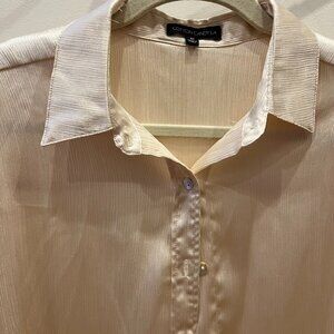 Cotton Candy LA Ivory Metallic Long-Sleeve Button-Down Blouse