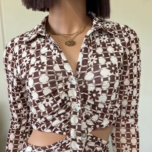 Cotton Candy LA Mini Dress Open Back - Floral 70's Brown Long Sleeve Size Small