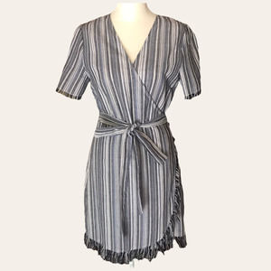 Cotton Candy LA Mini Dress Womens Medium Hartwood Blue Striped True Wrap Fringe